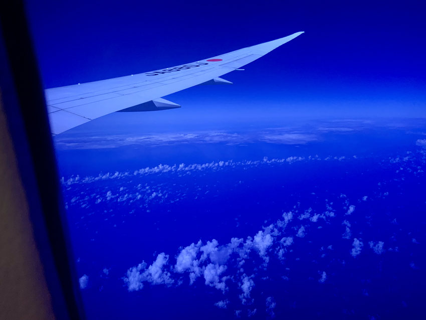 太平洋の束の間の夜。日付変更線を越えると紺からやがて碧い空が明るくなる。